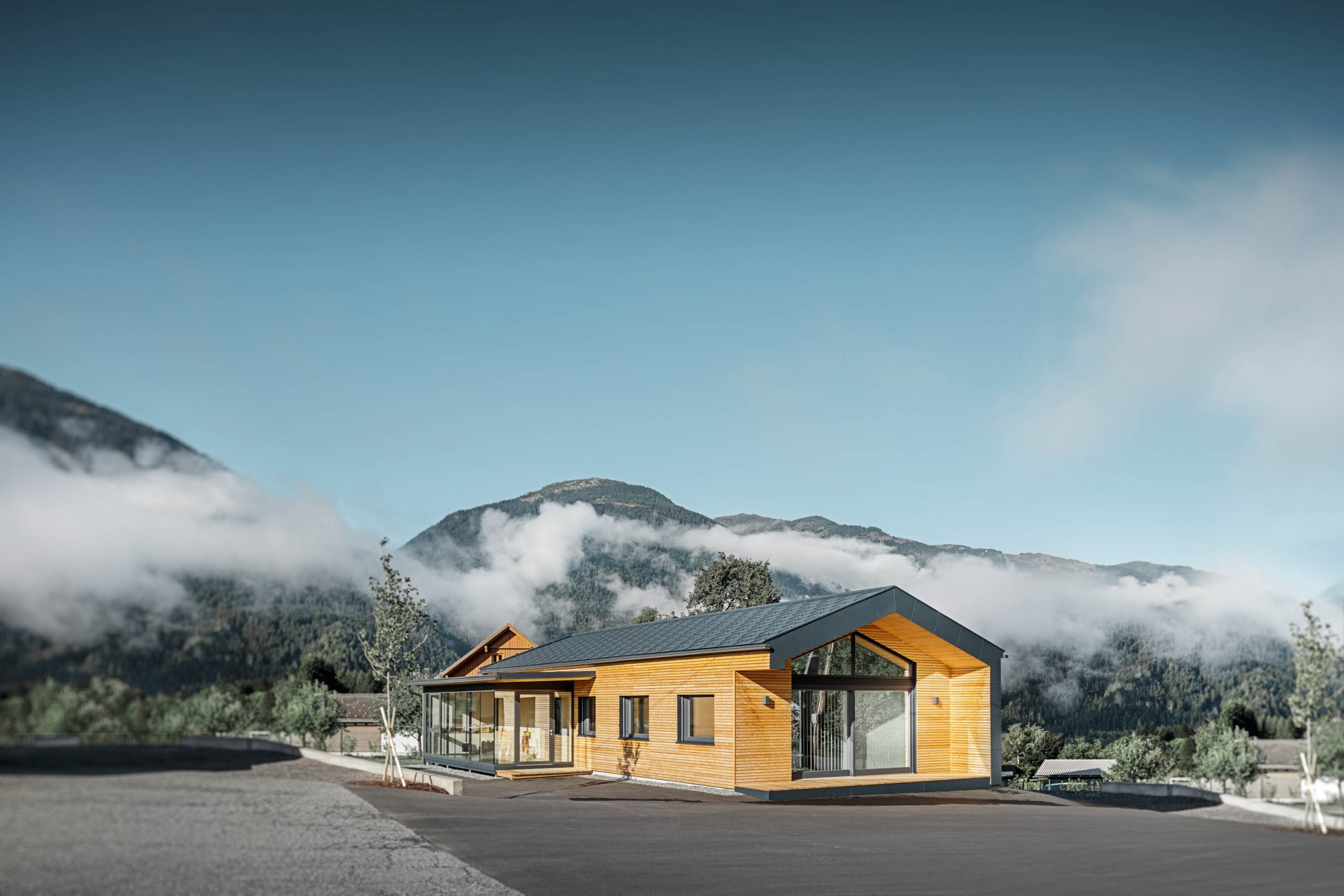 Nach eigenem Entwurf eines obergailtaler Familienbetriebs entstand ein ebenerdiges Bürogebäude. Der Neubau ist eine praktische und interessante Kombination aus Holz, Glas und Aluminium. Dass Holz und Alumiunium ein gutes Team sind, zeigen die vielen Gemeinsamkeiten in der Verarbeitung: kurze Bauzeit, ein einfaches Bausystem, ressourcenschonender Rohstoffeinsatz und große CO2-Einsparungen.
