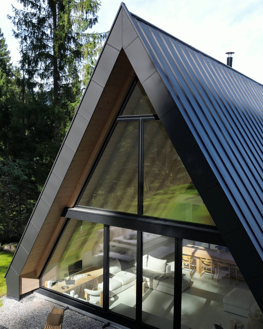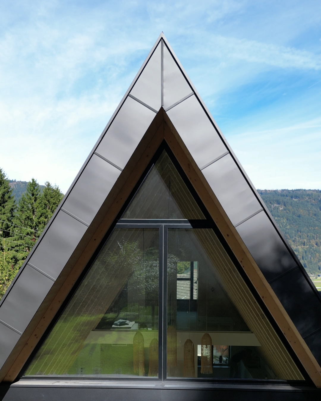 In Tröpolach entstand ein modernes Architektenhaus, das durch klare Linien, eine markante Dachform und eine konsequent durchdachte Ausführung zum echten Blickfang wurde. Das steile Satteldach mit 58 Grad Neigung verleiht dem Gebäude seine prägnante Form und stellte unser Team vor besondere handwerkliche Herausforderungen.